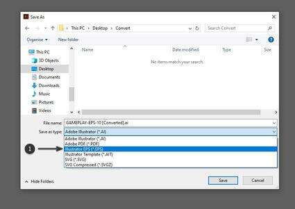 Choose a new name and destination for your file. In the dropdown menu, choose Illustrator EPS (*.EPS). Once you've done that, click on the Save button to convert your file.