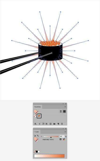 Now, you can select that starburst shape, assign that same Pantone color from the Swatches panel, and lower its tint to about 50%.